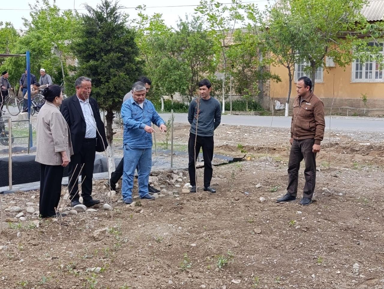 В день прибытия миссии на данном объекте был организован хашар по уборке и ограждении территории, а также посадке саженцев вокруг объекта, на котором непосредственное участие приняли специалисты проекта.